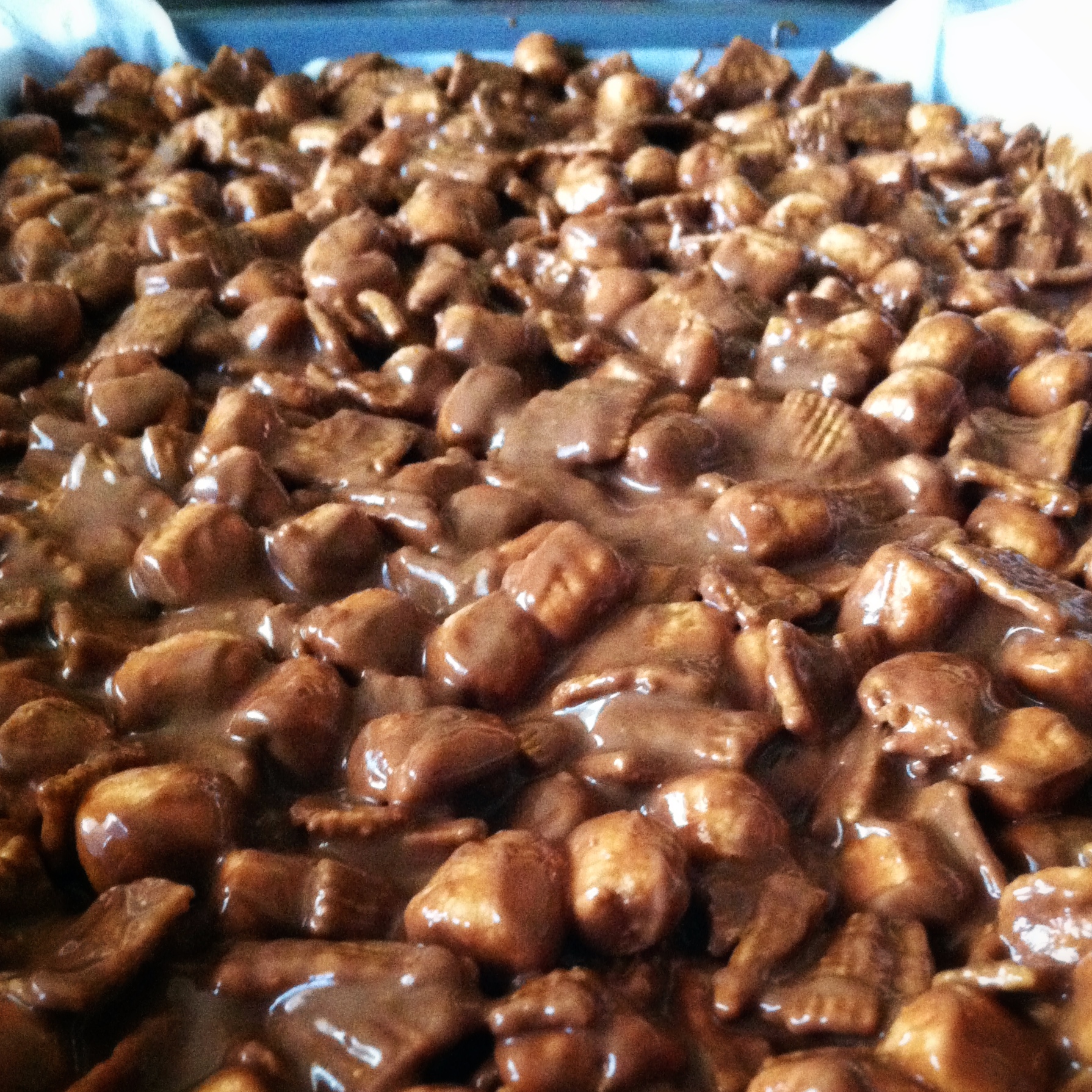 Remove from heat and cool slightly then add marshmallows, Golden Grahams and remaining butterscotch chips and stir gently to coat.