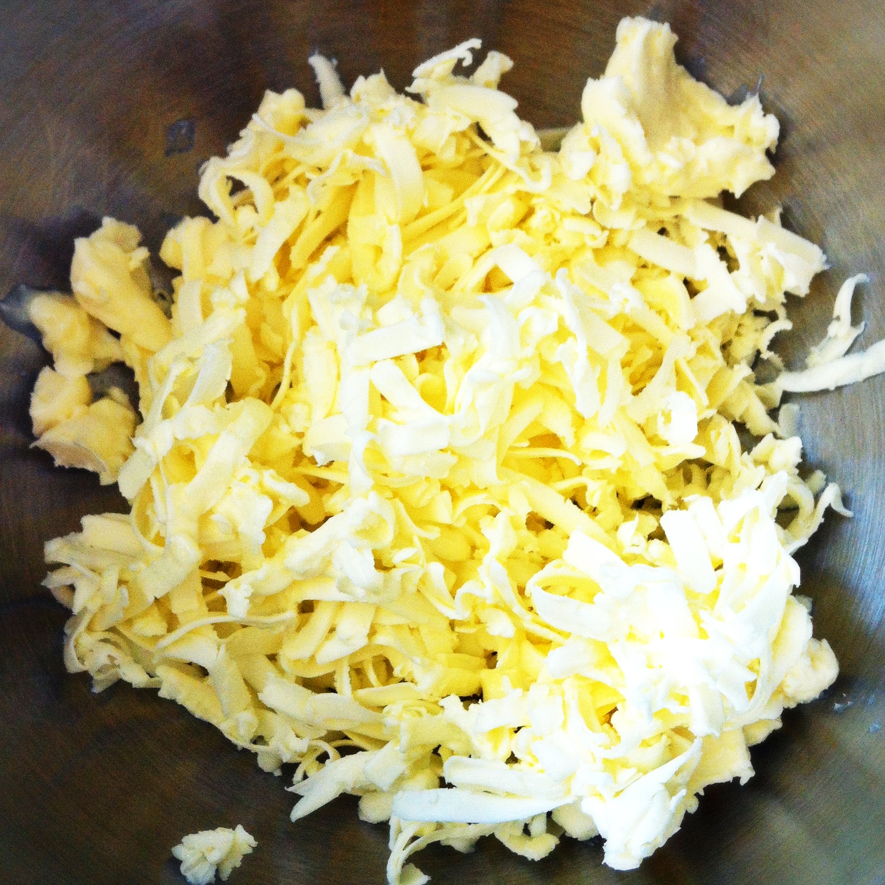 Make the crust. Shred the butter on a cheese grater then set aside.