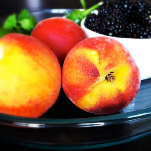 This particular combination is pretty darn tasty AND versatile. Sweet peaches with juicy blackberries marry well with a bit o’crisp jalapeño spice. We paired this with grilled salmon, but it would also be delicious with simply seasoned grilled pork or even a cheese plate with some crusty french bread.