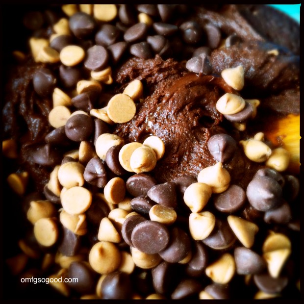 This is actually an adaption of Martha Stewart’s recipe for Double-Chocolate Chunk Cookies, which is to-die-for in it’s ‘untinkered with’ state. But seriously, who can deny a little double peanut butter action?