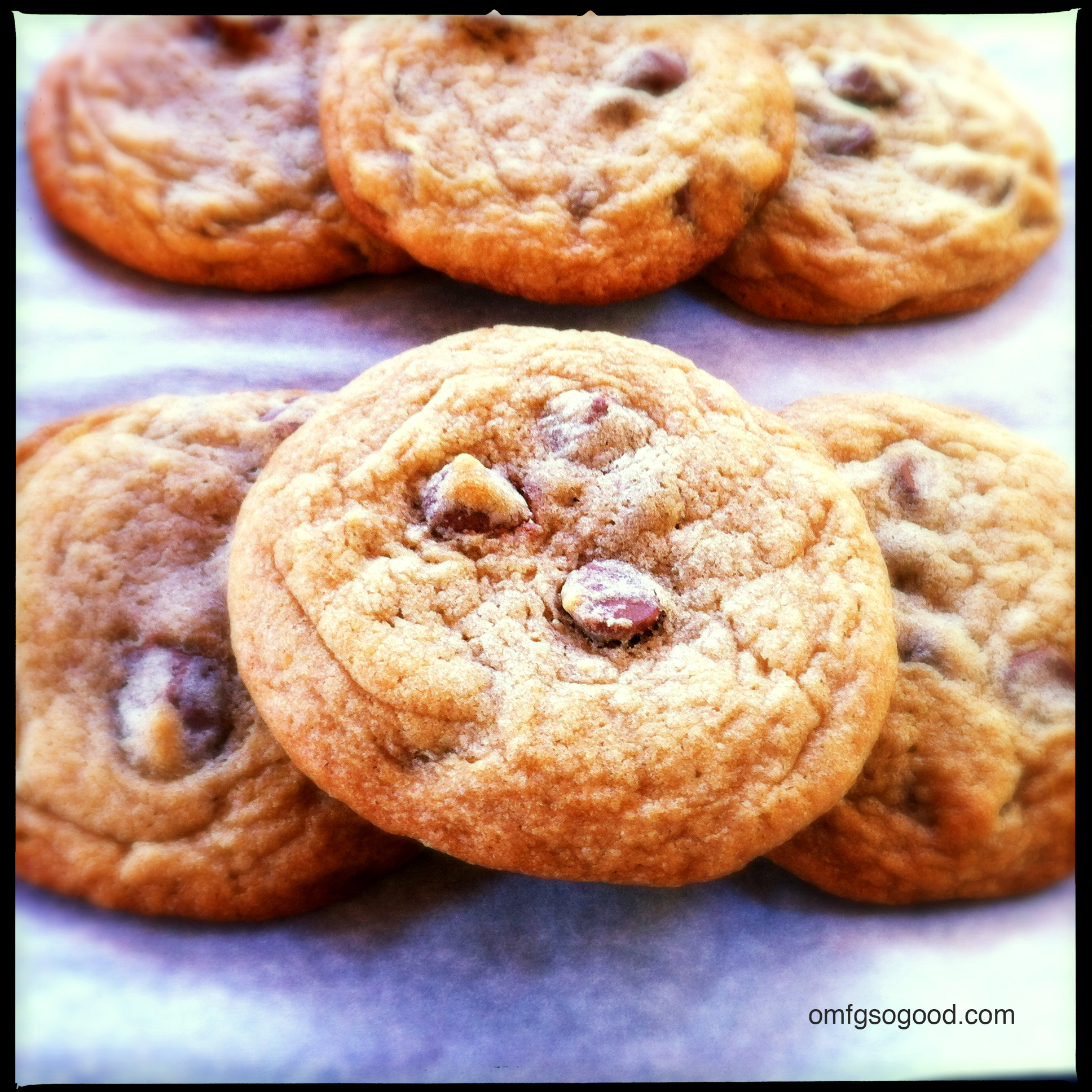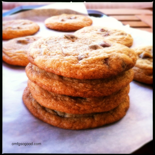 So, here I am stuck with a lifetime supply (okay, maybe just a month’s worth) of snack size Kit-Kat Bars and… Peanut Butter Cups. Which happen to be the perfect shape and size to sandwich between two chewy, warm chocolate chip cookies.