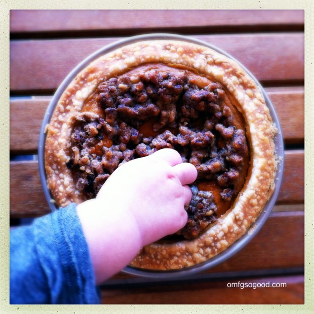We actually happened to be heading to our Foodie Friends’ house for dinner the night I made these, so I doubled the recipe and made another small pie to bring along.*