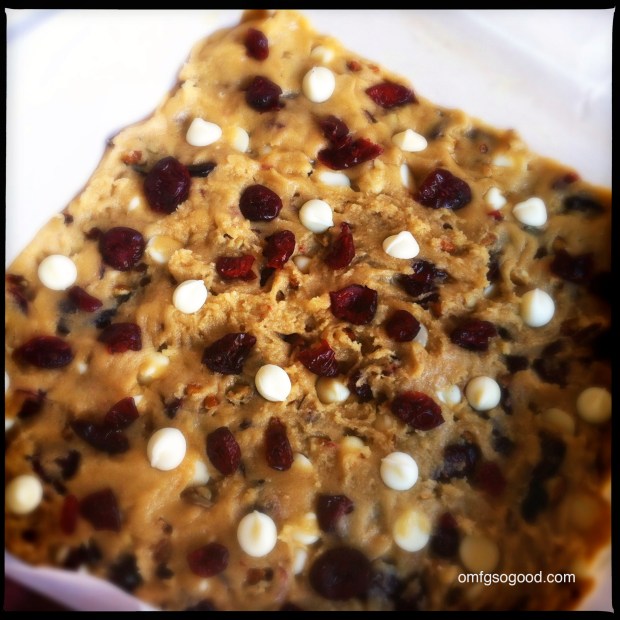 These just taste like winter to me. The dried cranberries pair exceptionally well with the freshness of the orange zest, spiciness of the rum, rich buttery crunch of the pecans and creamy sweetness of the white chocolate. The addition of just a taste of rich dark chocolate has them teetering right on the edge of downright sinful. Zoinkies.