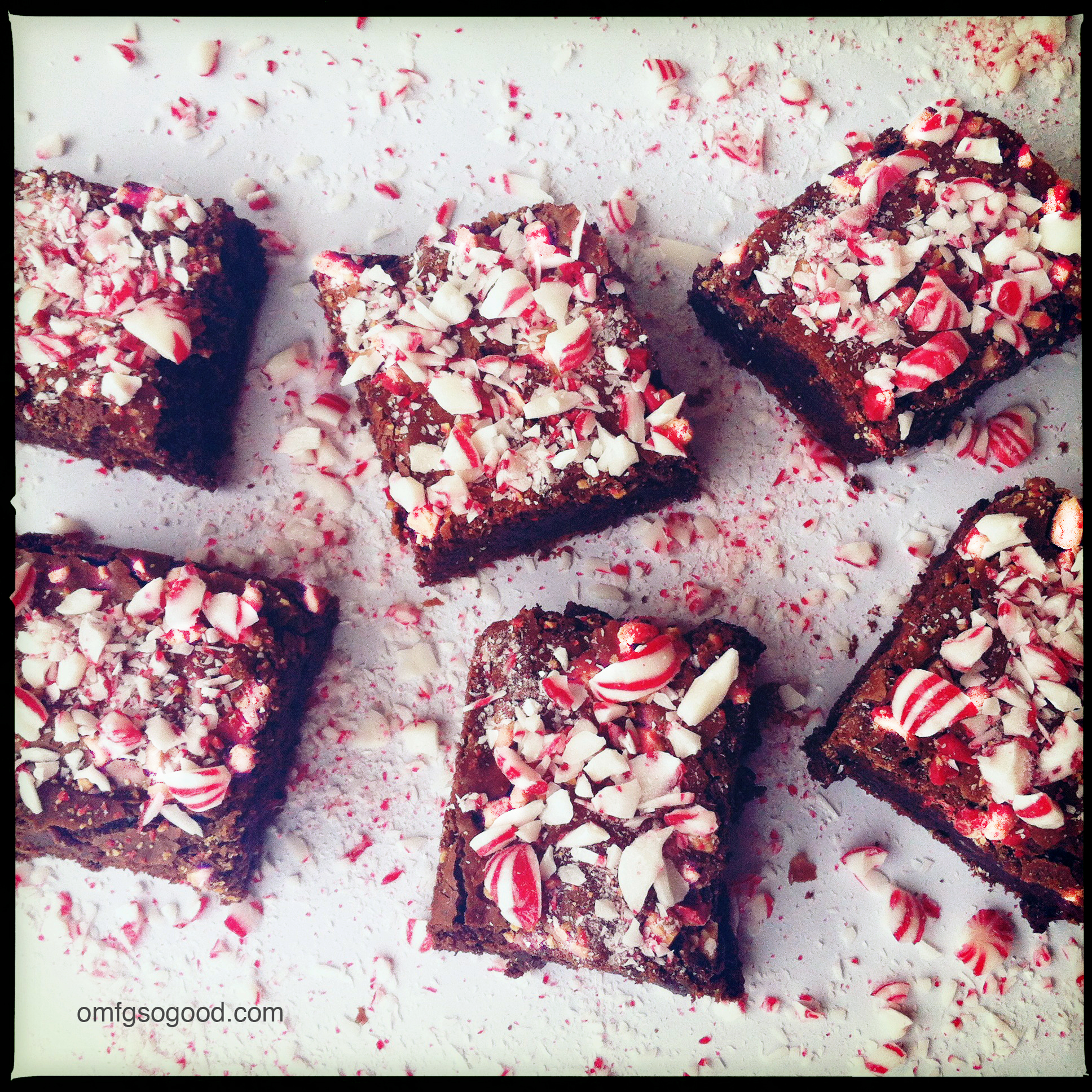 These brownies are decadently fudgy with the subtle hint of espresso and a cool peppermint finish, and the crushed candy cane topper gives them a great textural balance. Let me put it this way… if you could chew a Starbuck’s peppermint mocha it would probably be pretty spot on to one of these badboys.