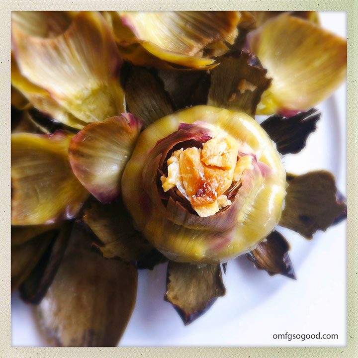 Artichokes are just one more reason I need to visit Italy at some point in my life. Seriously… beautiful landscapes, beautiful people, beautiful language and beautiful vegetables. I mean, come on. Just look at it. Almost too pretty to eat. Almost.