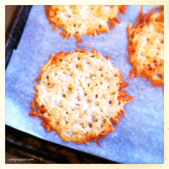Bake the cheese piles in the preheated oven for 2 – 3 minutes, or until they’re melty and golden brown around the edges…