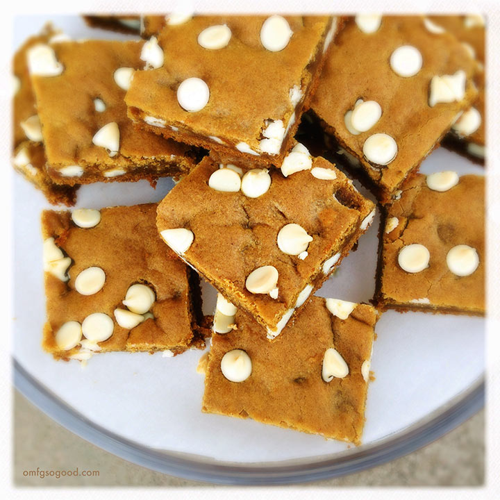 In a separate bowl, sift together the flour, baking soda, salt, cinnamon, ginger and cloves. Gradually add this mixture to the wet ingredients, and mix until just combined. Fold in the white chocolate and spread the batter evenly (it will be somewhat thick) into the prepared pan.